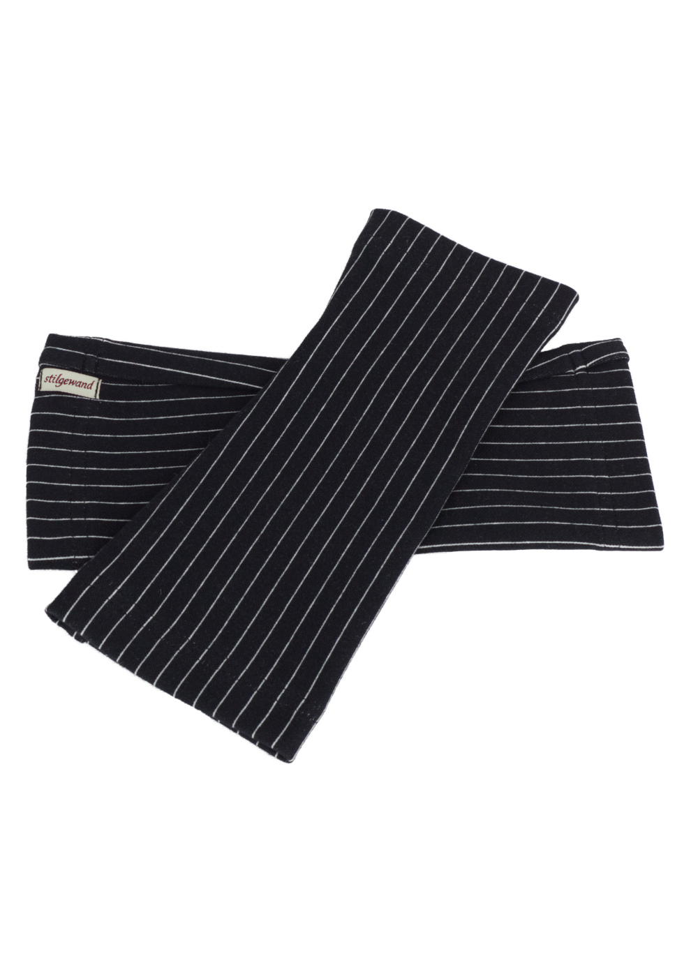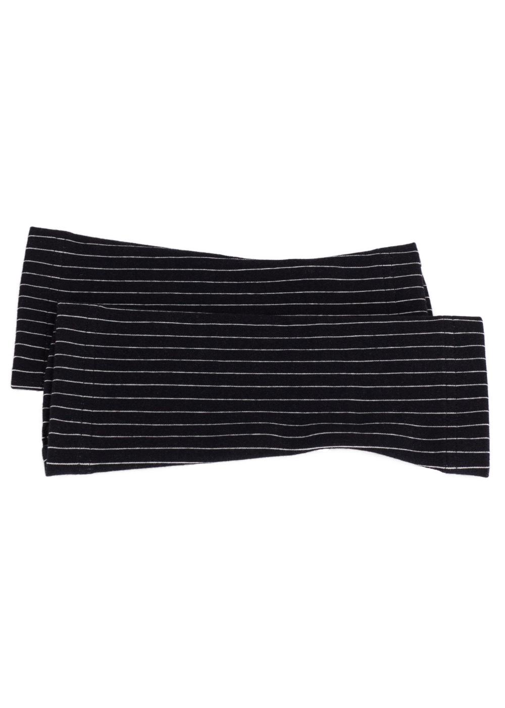 Die Stulpen in eleganter Passform sind einlagig und aus Bio-Baumwolle, verziert mit weißen Nadelstreifen.